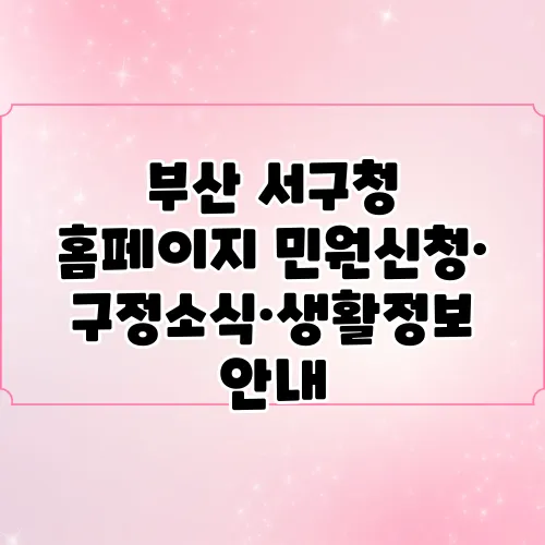 안녕하세요! 오늘은 부산 서구청의 홈페이지에서 제공하는 민원신청, 구정소식, 생활정보에 대해 자세히 알아보도록 하겠습니다. 부산 서구는 아름다운 해변과 다양한 문화유산으로 유명한 지역인데요. 그런데 이런 멋진 지역에서도 주민들이 필요로 하는 다양한 정보들이 어떻게 제공되고 있는지 같이 살펴보면 좋을 것 같습니다. 특히 부산 생활편의에 대한 내용은 매우 중요한 요소이니, 집중해서 알아보도록 하겠습니다.