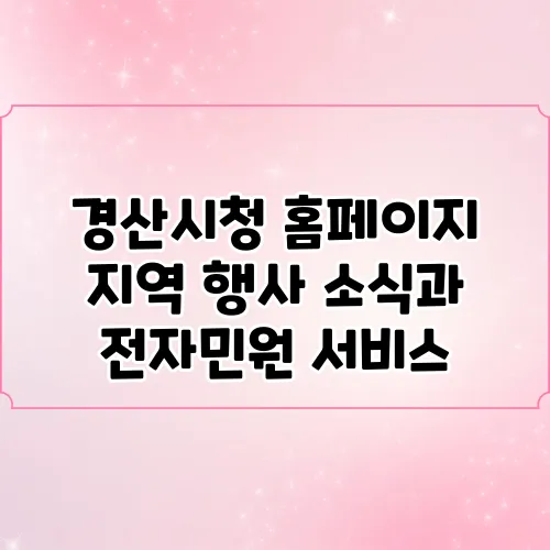 안녕하세요! 경산시청 홈페이지에 대해 이야기해보려고 해요. 경산시청은 경산 지역 주민들을 위해 다양한 지역 행사 소식과 유용한 전자민원 서비스를 제공하고 있습니다. 이 글을 통해 경산시청 홈페이지의 다양한 기능과 행사 소식에 대해 깊이 있게 알아보도록 하겠습니다. 함께 경산의魅力을 느껴보세요!