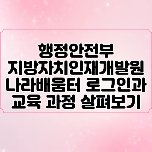 행정안전부에서 제공하는 지방자치인재개발원의 나라배움터는 다양한 온라인 교육 과정을 통해 지방자치단체 직원들이 전문성을 갖출 수 있도록 돕고 있습니다. 이를 통해 효과적으로 역량을 강화하고, 자치행정의 발전을 도모할 수 있습니다. 이번 글에서는 행정안전부의 지방자치인재개발원과 나라배움터의 로그인 방법, 교육 과정 및 그 활용법에 대해 자세히 설명드리겠습니다. 함께 그의 세계를 탐험해 보아요!