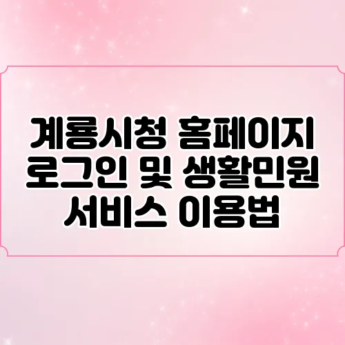 안녕하세요! 오늘은 계룡시청 홈페이지 로그인 방법과 생활민원 서비스의 이용법에 대해 알아보겠습니다. 계룡시민으로서 필요한 정보를 쉽게 접할 수 있는 기회를 제공하고자 하니, 부디 편안한 마음으로 함께 해주세요. 계룡시청의 다양한 서비스를 활용하는 방법을 소개하겠습니다.