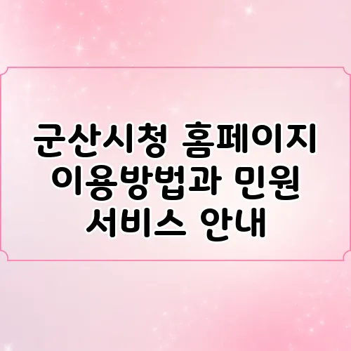 안녕하세요! 군산시청 홈페이지와 민원 서비스에 대해 알아보려고 합니다. 군산시는 아름다운 자연경관과 역사가 깃든 도시로, 많은 분들이 이곳의 다양한 서비스를 필요로 합니다. 특히, 군산시청 홈페이지를 통해 제공되는 민원 서비스는 시민들에게 많은 도움을 주고 있으며, 이러한 서비스를 효율적으로 이용하기 위해서는 홈페이지 이용 방법을 정확히 아는 것이 중요합니다. 오늘은 이것에 대해 자세히 살펴보겠습니다. 함께 탐색해 보실까요?