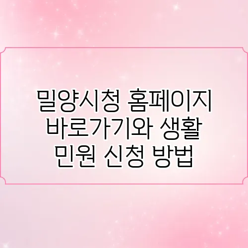 밀양시는 아름다운 자연과 풍부한 역사적 배경을 지닌 도시입니다. 이곳에서 제공하는 다양한 민원 서비스는 시민들이 일상에서 필요로 하는 여러 가지 사항들을 해결하는 데 큰 도움을 주고 있습니다. 특히, 밀양시청 홈페이지는 이러한 민원 서비스를 간편하게 이용할 수 있는 중요한 플랫폼입니다. 이번 포스팅에서는 생활 민원 신청 방법과 밀양시청 바로가기 안내에 대해 자세히 소개하겠습니다. 온라인 민원 신청을 통해 더욱 편리하게 서비스를 이용해 보세요.