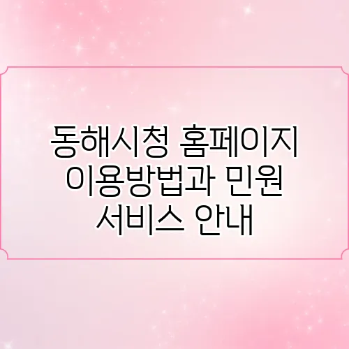 동해시청 홈페이지는 행정 정보와 다양한 민원 서비스를 제공합니다. 시민들이 쉽게 접근할 수 있도록 설계되어 있으며, 사용자 친화적인 인터페이스를 갖추고 있습니다. 이 홈페이지에서는 다음과 같은 다양한 서비스를 이용할 수 있습니다.