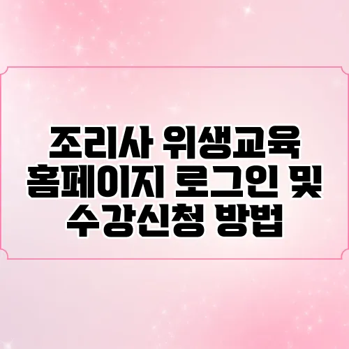 안녕하세요! 조리사 위생교육 홈페이지에 대해 알아보려고 하시나요? 오늘은 로그인 방법과 수강신청 과정을 좀 더 자세히 살펴보려고 합니다. 만약 위생 교육 프로그램에 참여하고자 하신다면, 이 가이드가 많은 도움이 될 것입니다. 조리사 위생교육은 여러분이 안전하고 깨끗한 조리 환경을 유지하는 데 필수적인 교육입니다. 그럼 함께 로그인 방법과 수강신청 절차를 탐색해 보겠습니다.