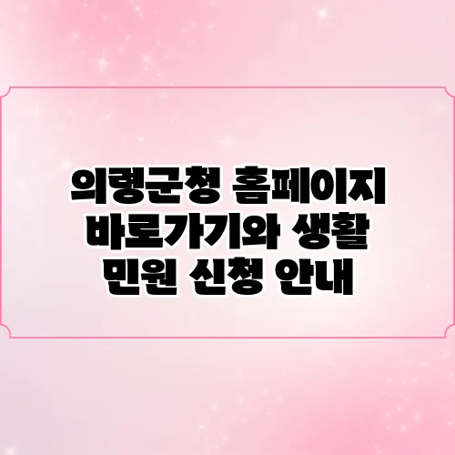 안녕하세요! 오늘은 의령군청 홈페이지와 관련된 많은 정보와 유용한 생활 민원 신청 방법에 대해 알아보겠습니다. 의령군민 여러분께서 편리하게 민원 서비스를 이용하실 수 있도록 여러 가지 정보를 체계적으로 정리해 보았습니다. 의령군의 다양한 민원 서비스와 혜택을 잘 이해하시고 활용하실 수 있도록 돕는 것이 저의 목표입니다. 그럼 함께 시작해볼까요?