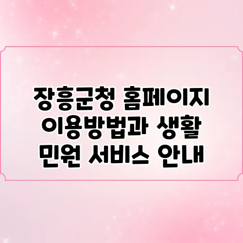 장흥군청 홈페이지는 주민들에게 필요한 다양한 정보를 제공하고, 여러 생활 민원 서비스를 손쉽게 이용할 수 있도록 돕습니다. 오늘은 장흥군청 홈페이지를 통한 생활 민원 서비스의 활용 방법 및 장흥군 청사 안내를 자세히 알아보겠습니다. 온라인으로 민원을 신청할 수 있는 방법을 소개하며, 보다 효율적으로 장흥군청 홈페이지를 활용하는 방법에 대해 친절하게 설명드리겠습니다.