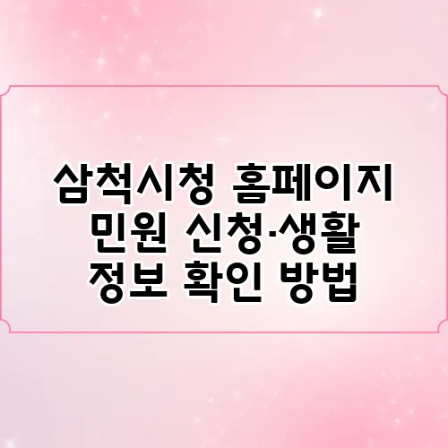 삼척시청 홈페이지는 다양한 민원 신청과 생활 정보를 제공하여 시민들이 보다 편리하게 서비스를 이용할 수 있도록 돕고 있습니다. 온라인 서비스를 통해 손쉽게 민원을 접수하고, 필요한 정보에 신속하게 접근할 수 있습니다. 특히, 코로나19 이후 비대면 서비스가 중요해지면서 통합된 온라인 플랫폼인 삼척시청 홈페이지의 활용도 늘어나고 있습니다. 이번 포스팅에서는 삼척시청 홈페이지를 통해 민원 신청과 생활 정보를 확인하는 방법에 대해 자세히 안내해 드리겠습니다.