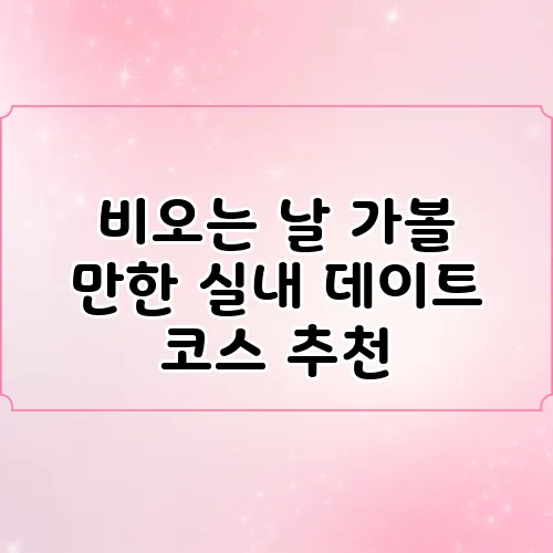 비 오는 날 데이트를 계획하고 계신가요? 실내 데이트는 날씨에 구애받지 않고 잊지 못할 추억을 만들 수 있는 방법입니다. 비오는 날 실내 데이트는 여러분의 창의력을 발휘할 수 있는 기회를 제공합니다. 나만의 특별한 장소를 찾아보거나, 새로운 활동을 시도해보세요. 이번 포스팅에서는 여러분이 비 오는 날에 즐길 수 있는 다양한 실내 데이트 코스를 추천드릴 예정입니다. 흥미로운 여정을 함께 떠나볼까요?