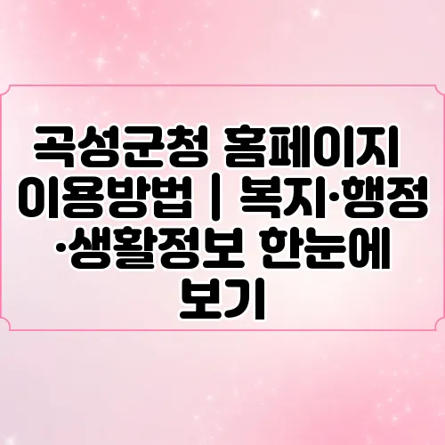 곡성군청 홈페이지 이용방법을 알고 싶으신가요? 곡성군청은 지역 주민에게 필요한 정보를 쉽고 빠르게 제공하기 위해 다양한 서비스를 온라인으로 운영하고 있습니다. 이 포스팅에서는 곡성군청 홈페이지를 효과적으로 이용하는 방법, 제공하는 복지 정보, 행정 서비스, 그리고 생활 정보를 한눈에 정리해 보겠습니다. 우리 함께 곡성군청 홈페이지를 탐색해보아요!