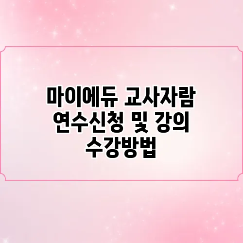 안녕하세요! 오늘은 교육계에서 매우 중요한 주제인 마이에듀의 교사자람에 대해 함께 알아보려고 합니다. 연수 신청 방법 및 강의 수강 방법에 대해 자세히 설명해 드릴 텐데요. 처음 접하시는 분들도 쉽게 이해할 수 있도록 친절하게 안내해 드릴 테니 편안한 마음으로 함께 해 주세요.