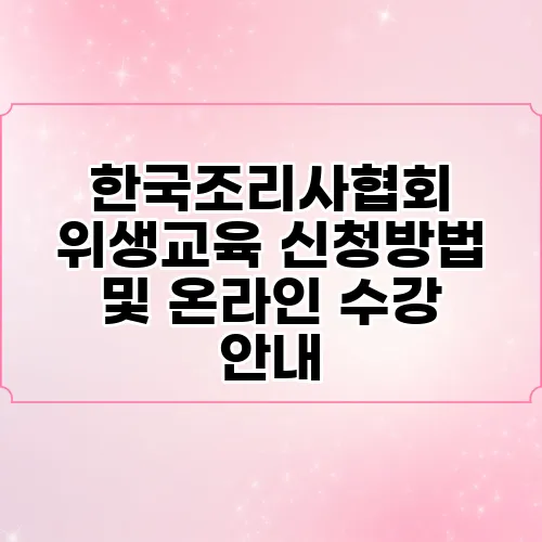안녕하세요! 오늘은 한국조리사협회에서 제공하는 위생교육 신청방법과 온라인 수강에 대해 자세히 알아보려고 합니다. 요즘 많은 분들이 조리 분야에서 성공을 꿈꾸고 계신데요, 이를 위해서는 필수적으로 조리사 위생교육을 듣는 것이 중요합니다. 이 글을 통해 교육 신청 방법, 온라인에서의 수강 절차와 유의 사항 등을 쉽고 편안하게 설명드릴 테니, 함께 살펴보시죠. Together, let’s explore the details that will help you navigate this vital aspect of your culinary journey!