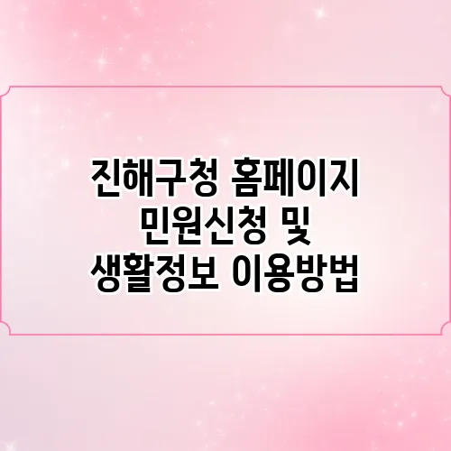 안녕하세요! 오늘은 진해구청 홈페이지에서 민원신청 및 생활정보를 어떻게 이용할 수 있는지에 대해 자세히 알아보도록 하겠습니다. 처음에는 조금 복잡하게 느껴지실 수도 있지만, 저와 함께 천천히 살펴보면 금방 익숙해질 수 있습니다. 진해구청의 다양한 서비스와 혜택을 누리기 위해 필요한 모든 정보를 제공드리겠습니다. 그러니 편안한 마음으로 읽어나가세요!