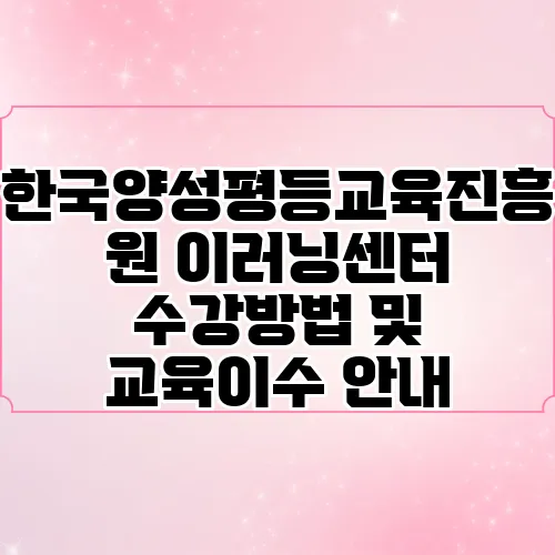 안녕하세요! 오늘은 한국양성평등교육진흥원에서 제공하는 이러닝센터의 수강 방법 및 교육 이수 안내에 대해 자세히 알아보려 합니다. 한국양성평등교육은 우리 사회에서 필수적인 교육으로 자리잡고 있으며, 이를 통해 양성평등 의식을 높이고 다양성을 존중하는 문화가 정착되고 있습니다. 이러닝센터 수강 방법을 통해 여러분도 이러한 교육을 손쉽게 받아보실 수 있습니다. 이에 대한 정보와 함께 교육 후 이수 방법도 알아보겠습니다. 함께 알아보시죠!