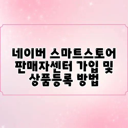 네이버 스마트스토어 판매자센터에 어떻게 가입하나요?