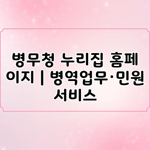 병역 문제는 많은 이들에게 중요한 주제입니다. 병무청의 누리집 홈페이지는 병역 업무 및 다양한 민원 서비스에 대한 정보를 제공합니다. 많은 분들이 병역신청이나 병무청 민원서비스에 대해 궁금해하실 텐데요, 이 글을 통해 병무청의 홈페이지와 관련된 내용을 자세히 알아보겠습니다. 이 내용은 여러분이 병역에 대한 정보를 찾는데 큰 도움이 될 것입니다.