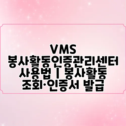 VMS 봉사활동인증관리센터는 봉사활동을 인증하고 관리하는 시스템으로, 자원봉사자들이 자신의 봉사활동 이력을 관리하고 인증서를 발급받을 수 있도록 지원합니다.