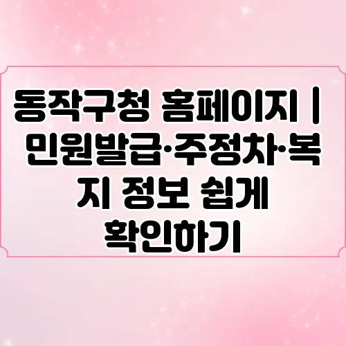 동작구청 홈페이지는 민원 발급, 주정차 정보 및 복지 서비스 등 다양한 기능을 제공하여 시민들에게 필요한 정보를 쉽게 확인할 수 있는 공간입니다. 동작구청의 각종 서비스는 일상적으로 접할 수 있는 중요한 정보들로, 여러분의 생활에 직접적인 도움이 될 것입니다. 꼭 필요한 정보들을 제대로 활용하여, 보다 좋고 행복한 삶을 누리시길 바랍니다.