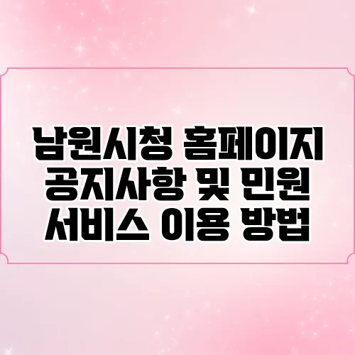 남원시청 홈페이지는 민원 서비스를 포함하여 다양한 정보를 제공합니다. 여기에는 공지사항, 지역 소식, 행사 일정 등이 포함됩니다. 주민들은 이 홈페이지를 통해 필요한 정보를 손쉽게 찾을 수 있습니다.