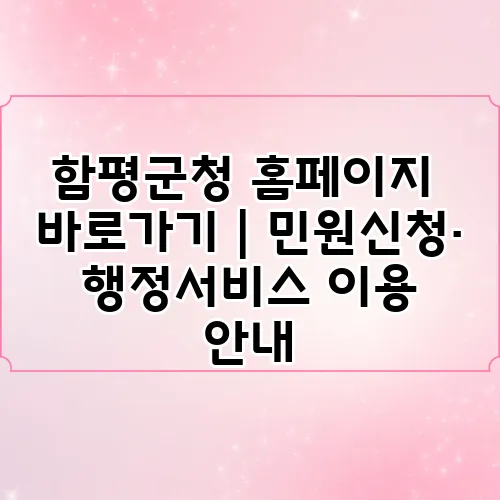 행정서비스 이용 안내는 함평군청 홈페이지의 '행정서비스' 메뉴를 통해 확인할 수 있으며, 관련 자료 및 이슈에 대한 정보도 제공됩니다.