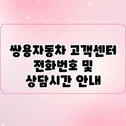 쌍용자동차 고객센터는 차량과 관련된 모든 문제를 해결하기 위한 최적의 장소입니다. 쌍용자동차 전화번호와 상담시간을 잘 활용하면 문제를 신속하게 해결할 수 있습니다. 고객센터를 통한 소통은 쌍용자동차의 서비스 품질을 높이는 데 매우 중요한 역할을 합니다. 앞으로도 쌍용자동차를 이용하실 때 이 정보를 꼭 기억해 주시면 좋겠습니다. 차량과 관련된 모든 문의는 주저하지 마시고 쌍용자동차 고객센터로 전화해 주세요. 여러분의 차량이 늘 안전하고 편리하게 이용될 수 있도록 쌍용자동차가 언제나 함께하겠습니다.