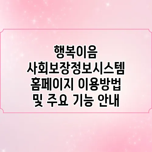 행복이음 사회보장정보시스템 홈페이지는 다양한 사회보장 제도와 관련된 정보를 제공하고, 이용자들이 필요한 서비스를 쉽게 접근할 수 있도록 돕는 플랫폼입니다.