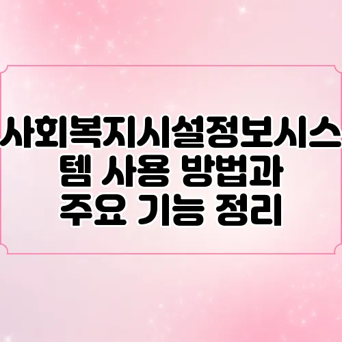 사회복지시설정보시스템이란 무엇인가